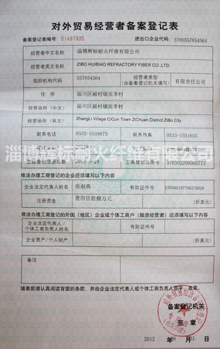 淄博輝標(biāo)耐火纖維有限公司是一家專業(yè)從事耐火纖維棉,陶瓷纖維和莫來(lái)石晶體纖維材料的研制開(kāi)發(fā)、生產(chǎn)經(jīng)營(yíng)及施工于一體的綜合性公司,下屬淄博輝標(biāo)耐火纖維有限公司博山分公司、淄博輝標(biāo)耐火纖維有限公司外貿(mào)分公司、淄博輝標(biāo)耐火纖維有限公司窯爐工程分公司、淄博輝標(biāo)耐火纖維有限公司銷售分公司、淄博輝標(biāo)耐火纖維有限公司潮州分公司。